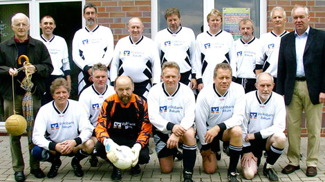 2004 75 Jahre SC Schwarz-Weiß Bakum: stehend von li. Heinz Rasche, Clemens Hölscher, Dieter Rasche, Georg gr. Siemer, Hartmut Pille, Clemens Deberding, Heinz Krümpelbeck, Alois Fangmann, Clemens Hoping, kniend Marcel Lamping, Heinz Wübbelmann, Bernhard Feldkamp, Heinrich Evers, Albert Schlotmann, Josef Rolfes