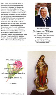 Totenbild von Sr. Wilma Schiplage, verst. am 30.3.2015
