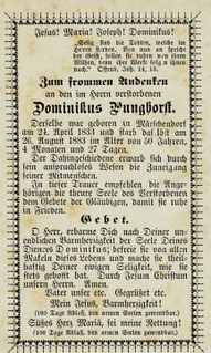 Totenbild von Dominikus Punghorst, verstorben am 26.8.1883