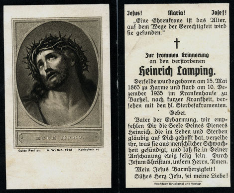 Totenbild von Heinrich Lamping, verstorben am 10.12.1935